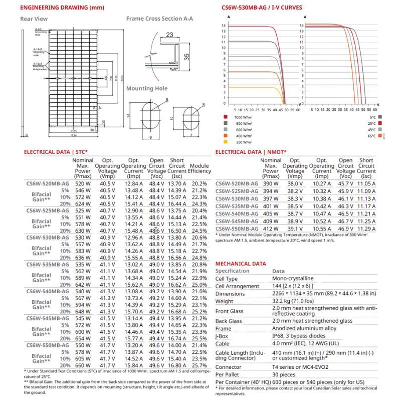 Panneau solaire BiHiku6 CS6W-540MB-AG